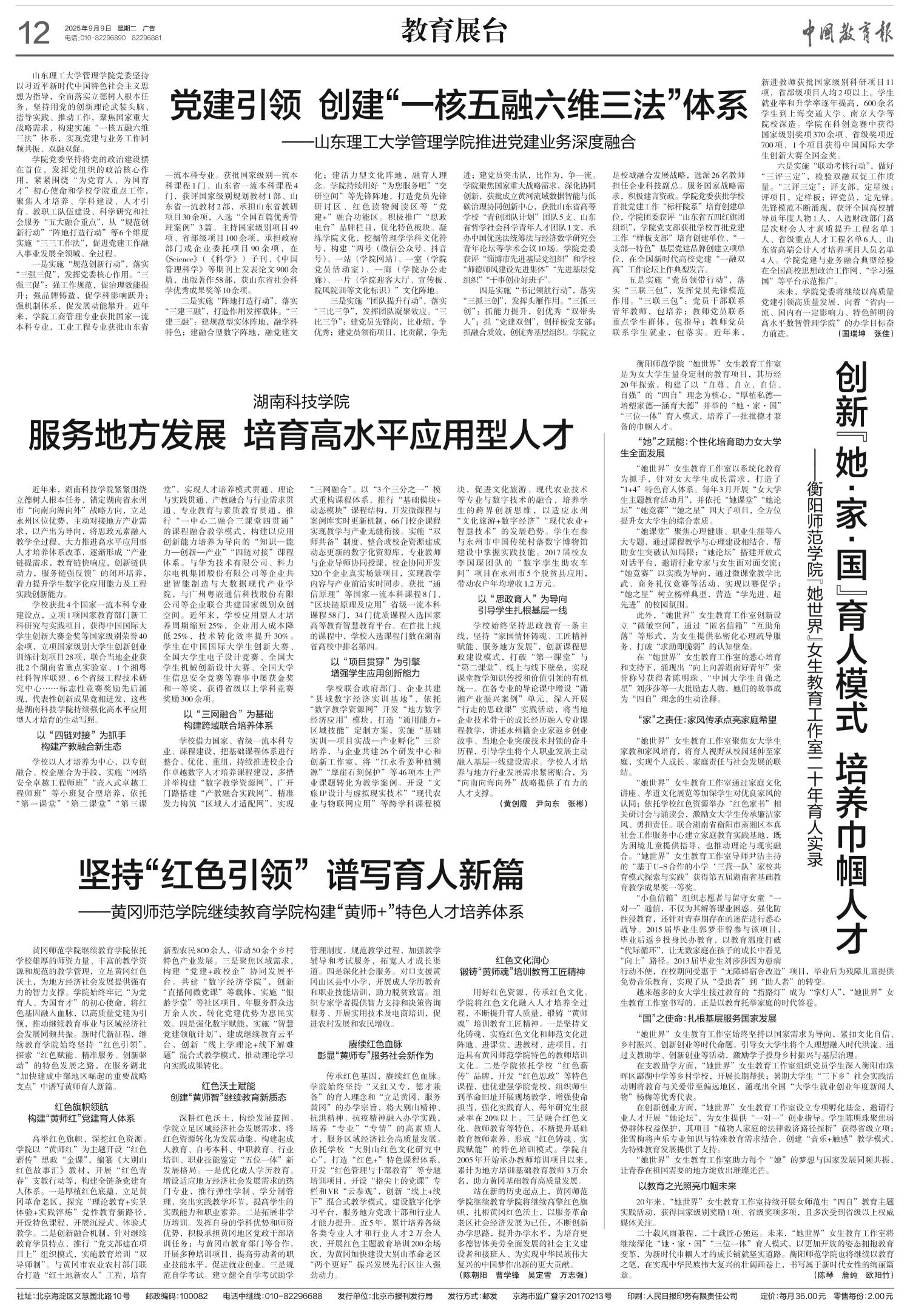 高举红色旗帜,深挖红色资源。学院以“黄师红”为主题开设“红色薪传”思政“金课”,编纂《大别山红色故事汇》教材,开展“红色青春”支教行动等,构建全链条党建育人体系。一是厚植红色底蕴,立足黄冈革命老区,探究“理论教育+实景体验+实践淬炼”党性教育新路径,开设特色课程,开展沉浸式、体验式教学。二是创新融合机制,针对继续教育学员特点,推行“党支部建在项目上”组织模式,实施教育培训“双导师制”。与黄冈市农业农村部门联合打造“红土地新农人”工程,培育新型农民800余人,带动50余个乡村特色产业发展。三是聚焦区域需求,构建“党建+政校企”协同发展平台。共建“数字经济学院”,创新“直播间微党课”等载体,实施“银龄学堂”等社区项目,年服务群众达万余人次,转化党建优势为惠民实效。四是强化数字赋能,实施“智慧党建领航计划”,建成继续教育云平台,创新“线上学理论+线下解难题”混合式教学模式,推动理论学习向实践成果转化。